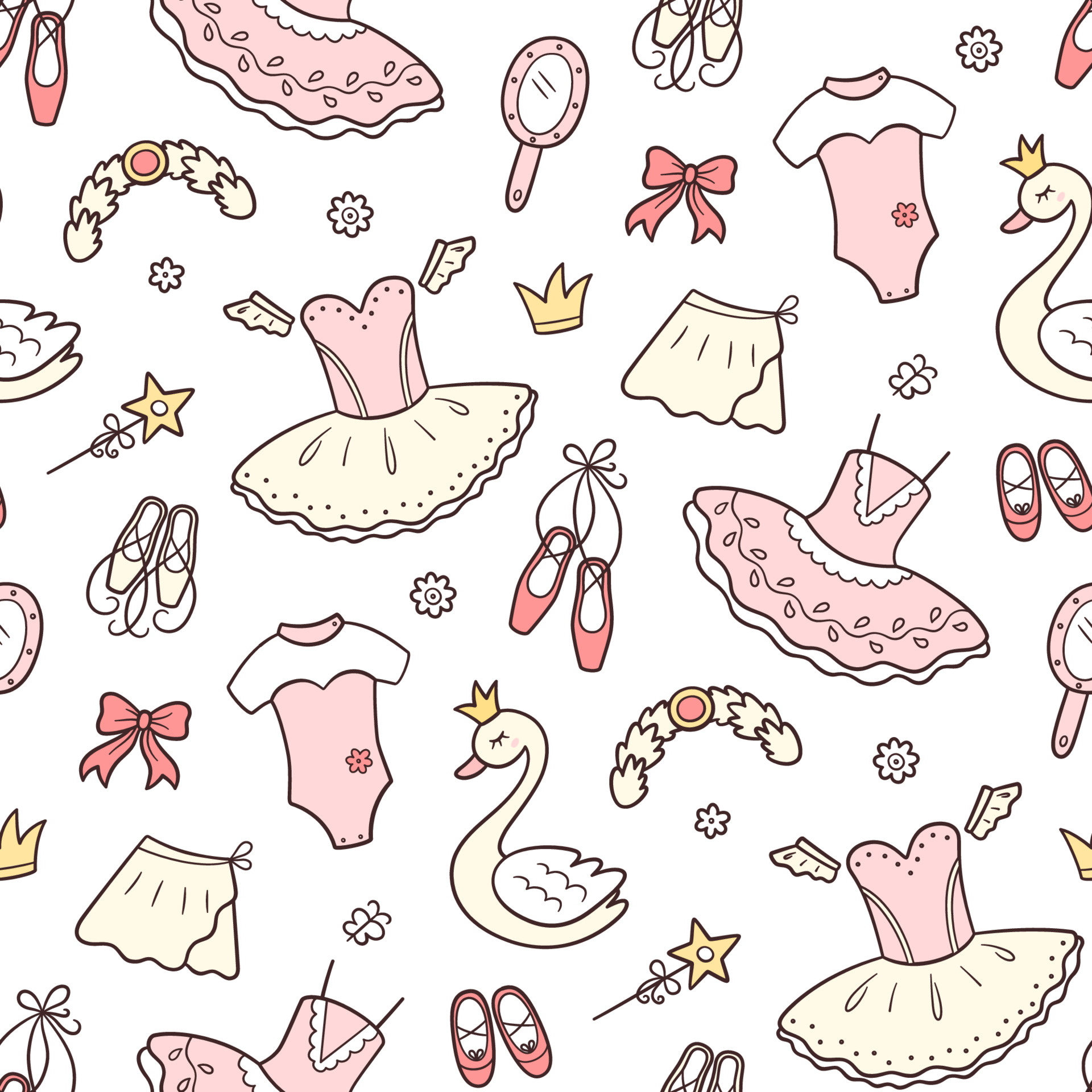 Seamless Pattern For Little Ballerina With Ballet Accessories Hand Drawn Tutu Pointes Ballet Dress Swan Crown 3794935 Vector Art At Vecteezy